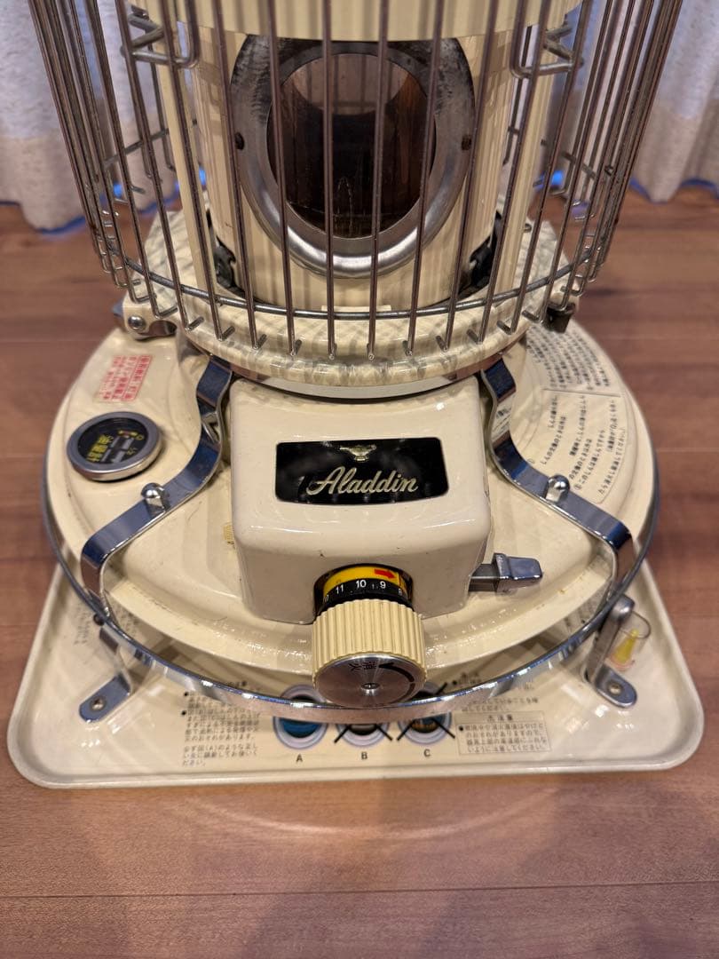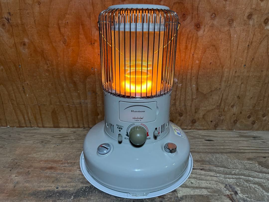 買い替えの為、出品致します。\r目立つ傷・錆などもなく、ガラスにも汚れ/ヒビが無く比較的、綺麗だと思います。\r\r================-\r\rトヨトミ Moon Lighter ムーンライター ML-21\r色は、人気のブラック\r製造年は、不明\r古いストーブですが状態も良く芯も新品に交換しましたので、まだまだ活躍してくれます。\r冬場のキャンプなどにいかがでしょうか?\r電気も使用しないので災害時などにも役立つと思います。ご自宅や店舗にポツンと置いてても可愛いストーブです。\r\r●商品状態●\r商品は、分解し清掃◦動作確認をしています。\r\r天板◦◦線キズあり\rガード部分◦◦少し点サビあり\rガラス外筒◦◦綺麗\rメッキプレート◦◦少し点サビあり\rボディ◦◦小キズあり\rタンク◦◦点キズあり\r受皿◦◦表面、薄ヨゴレあり\r 裏面、キズあり\r芯の状態◦◦ 新品の芯に交換済み\r※芯交換後、燃焼チェックしています\rタンク内◦◦サビなし\r燃焼装置◦◦綺麗\r点火装着◦◦OK\r消火機能◦◦OK\r電池ボックス◦◦液漏れ跡なし\r※電池での点火など問題ないです\r※単2電池2本は、購入者様の方でご準備下さい\r去年買った5リットルの灯油入れのポンプもお付けします。しっかり閉まるので漏れることは一度もありませんでした。\r(物の見方は、個人差があります。気になさる方は、ご購入をお控え下さい。)\r\r発送は、リサイクルの段ボールを使用させて頂きます。\r\r(注)\r古い中古石油ストーブとなります。\r火傷や火災など一切責任負えませんので、ご了承願います。使用の際は、自己責任にてお願いします。\r\r本体形状2: 縦型\r石油ストーブ・芯/バーナ式: 芯式\r石油ストーブ暖房方式: 対流式\r石油ストーブ暖房能力2クラス別: 2.3〜2.6KW\rカラー···ブラック\r燃料···灯油\r適用畳数···~10畳未満\r油タンク容量(L) 4.9\r暖房出力(kW) 2.5\r使用電池 単2×2本\r\r※あくまで中古品なので、神経質な方は購入をご遠慮下さい。\r\r種別···石油ストーブ